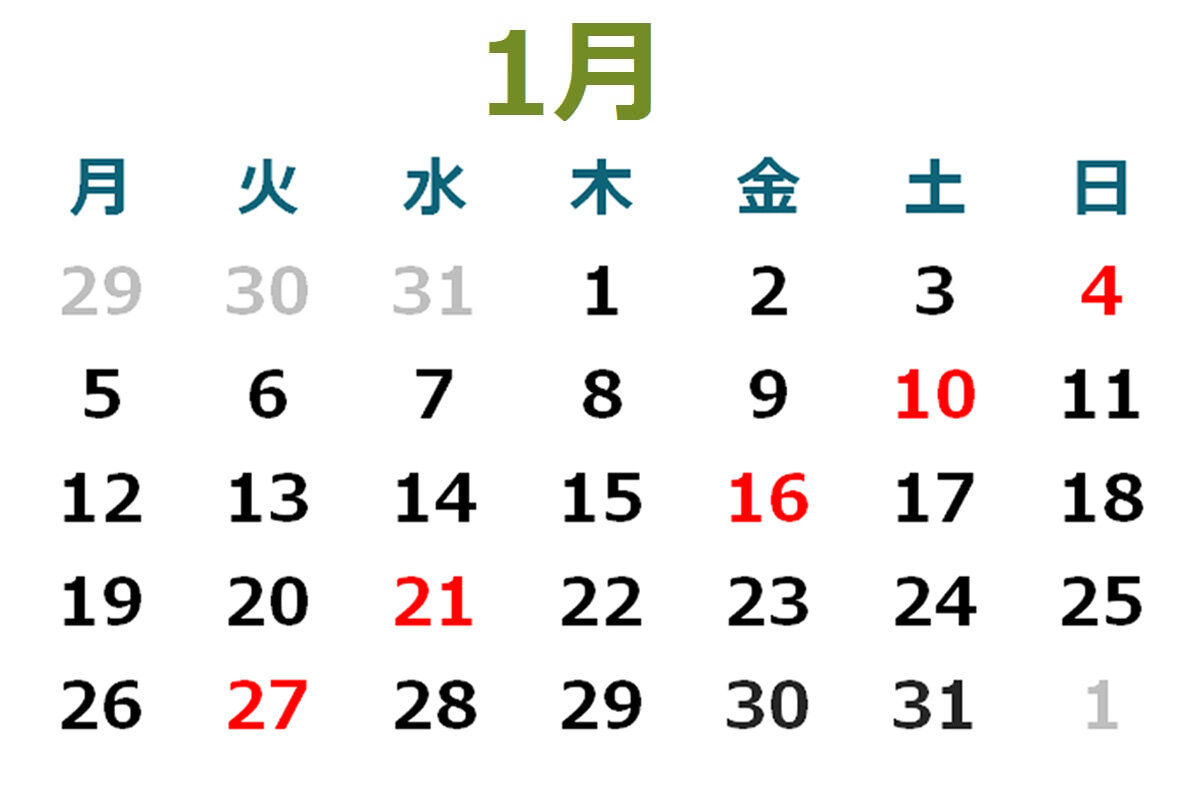 | 1月 | 2(木)・8(水)・14(火)・20(月)・26(日)・30(木) |